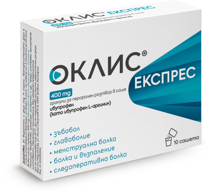 Оклис Експрес 400 mg гранули за перорален разтвор се използва при възрастни и деца на 14 години и повече за симптоматично лечение на: