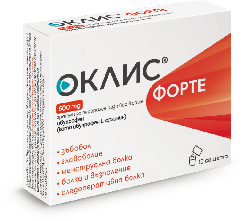 Оклис Форте 600 mg гранули за перорален разтвор се използва при възрастни и деца на 14 години и повече за симптоматично лечение на: