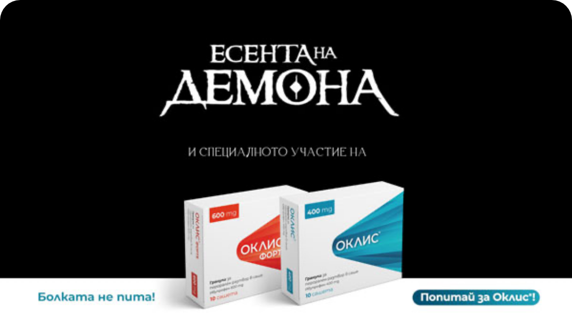 Най-бързо действащото обезболяващо Oklys стана и екранна звезда. Продуктът ни взе участие в 4 от епизодите на популярния български сериал „Есента на демона“, продължението на „Дяволското гърло“.